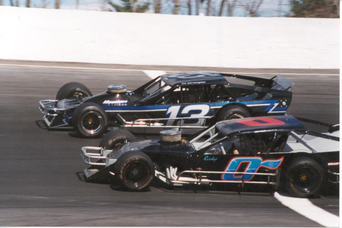 Ted Christopher's Sunoco Modified (13) and Ricky Young (0)