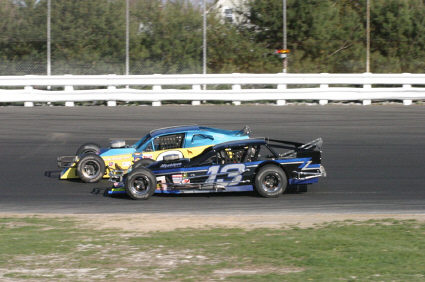 sscm04 - Ted Christopher (13) passes Eddier Flemke (79) with less than 5 laps to go to win the FMS event.
