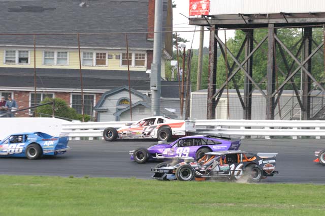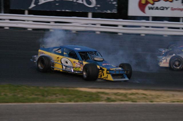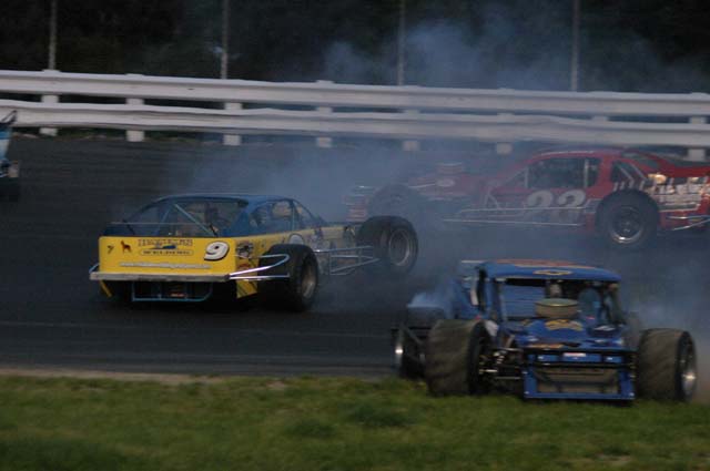 event. Wayne Bellefleur (16) spins in turn 4, Bo Gunning(17) Brad Hietala(9) spins |