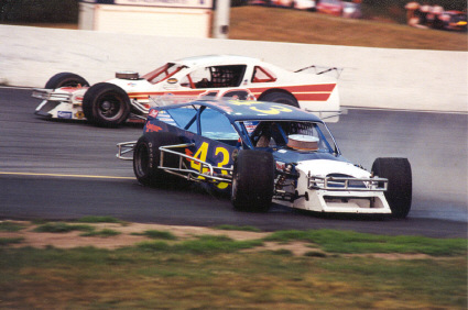 Limited Sportsman action with Mike Cavanaugh (86) and Ernie La Rose (97)